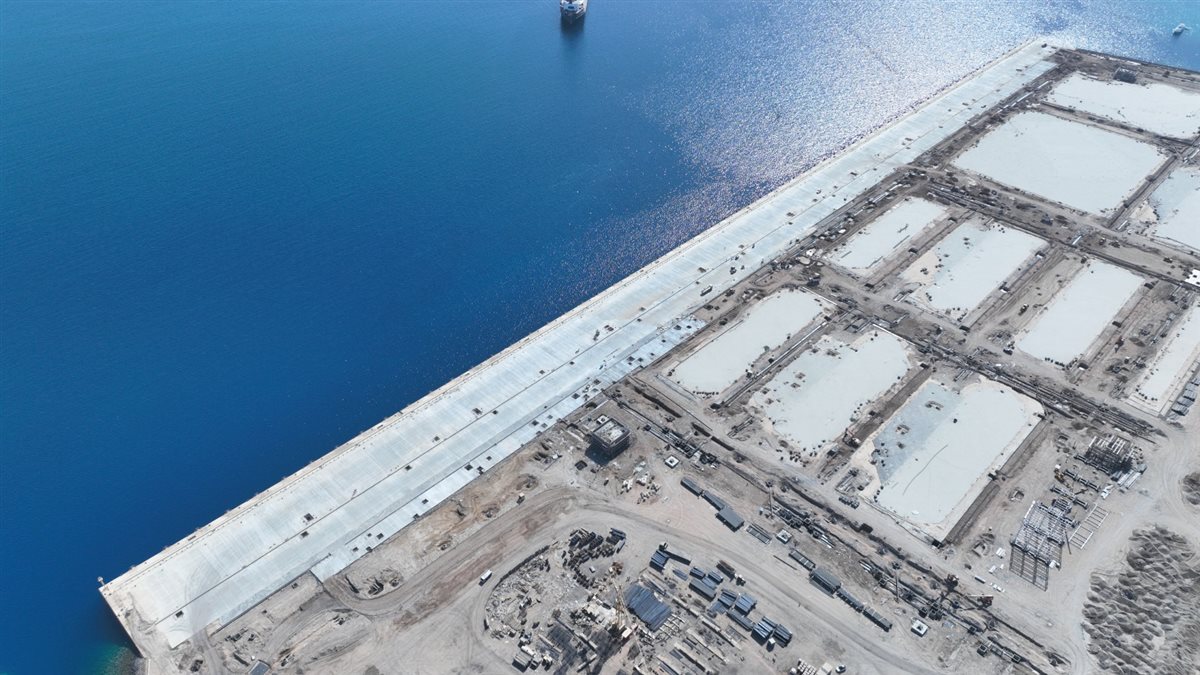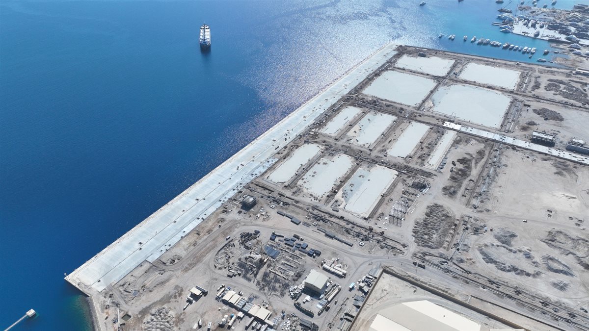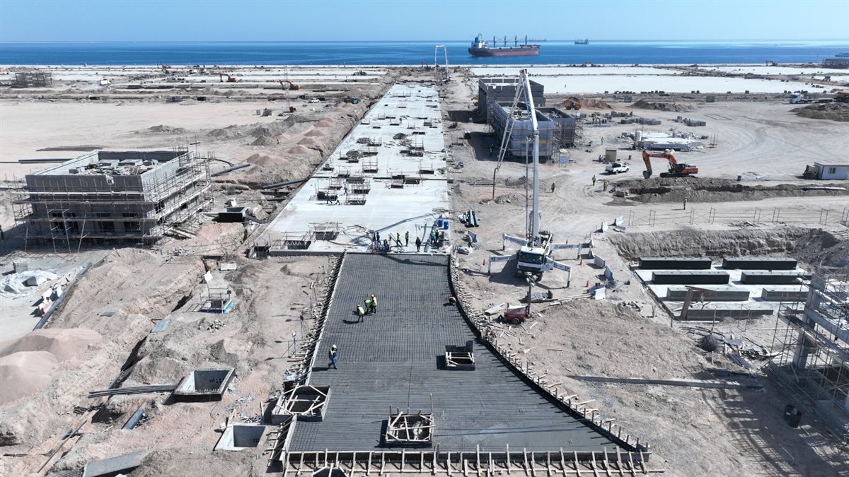 المشروع يمتد على مساحة حوالي 776 ألف متر مربع، ويشمل رصيف بطول 1100 متر وعمق 17 مترًا، وقد اكتملت أعمال البنية التحتية بنسبة 100% من خلال شركات وطنية متخصصة.