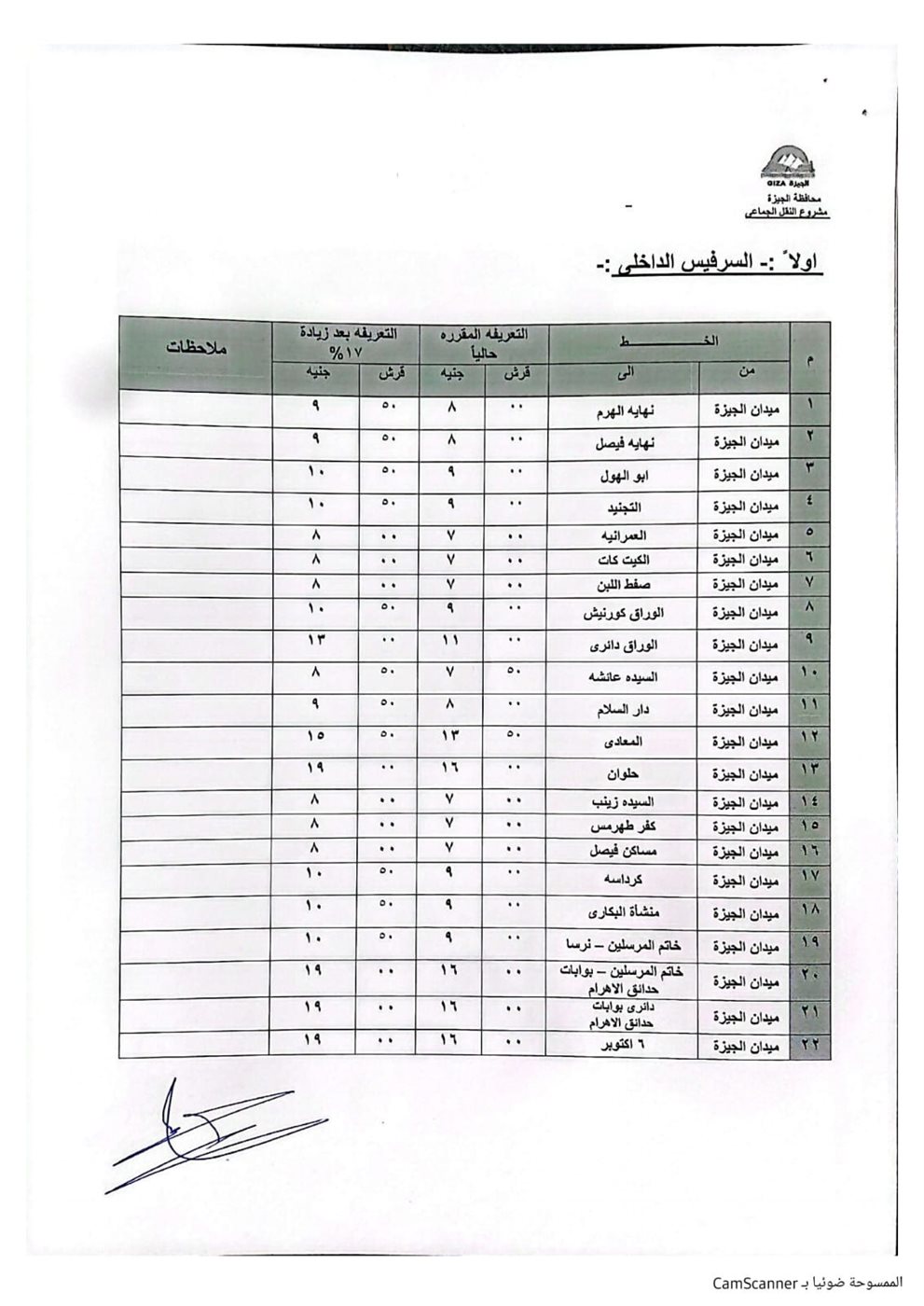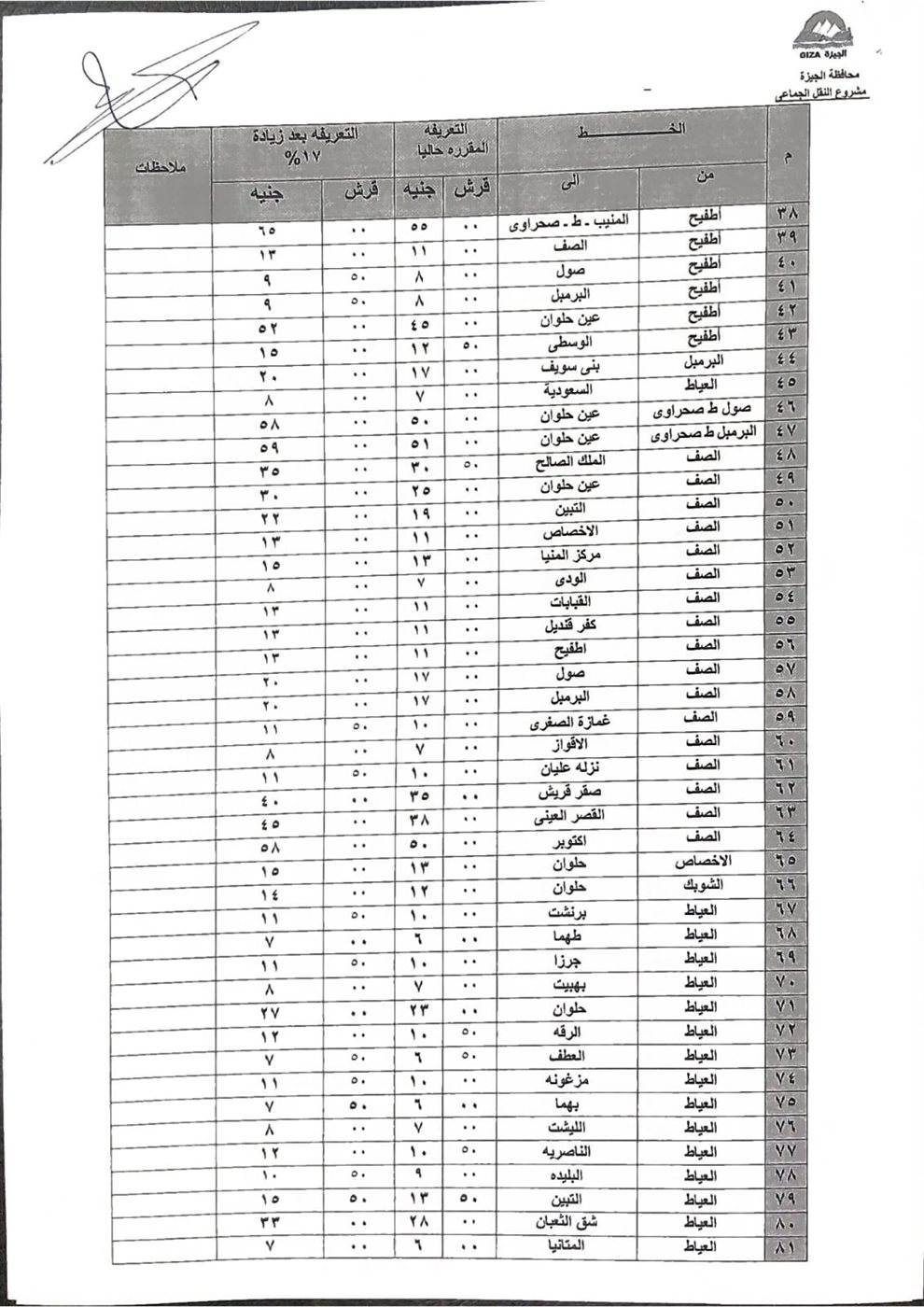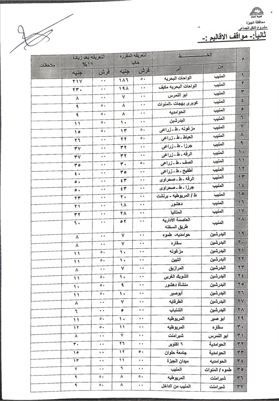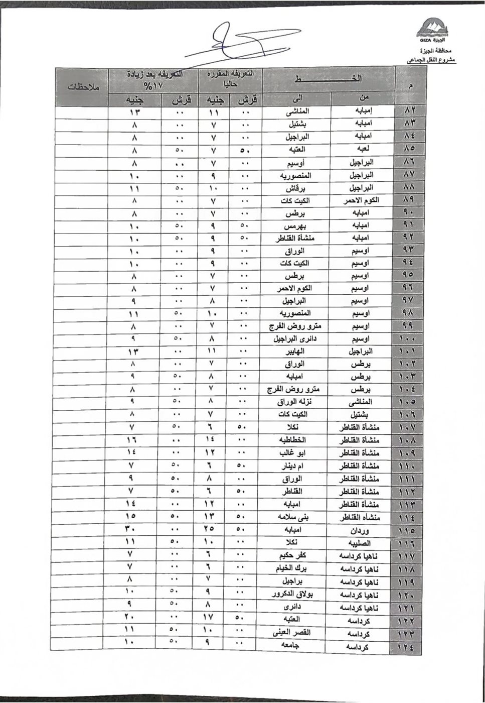 اعتمد محافظ الجيزة، الدكتور أحمد الأنصاري، التعريفة الجديدة لسيارات السرفيس والنقل الجماعي اعتبارًا من اليوم، وذلك بعد قرار وزارة البترول بتحريك أسعار المنتجات البترولية.