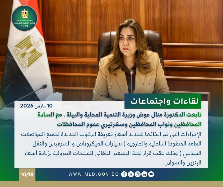 تابعت الوزيرة مع المحافظين الإجراءات الخاصة بتحديد أسعار تعريفة الركوب الجديدة بعد زيادة أسعار الوقود، وعقدت اجتماعًا مع قيادات وزارتي الاتصالات والتخطيط لمتابعة تطوير إجراءات إصدار تراخيص المحال.