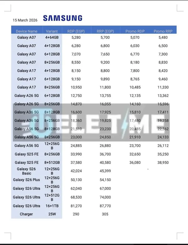 ارتفعت أسعار موبايلات سامسونج في السوق المصرية اليوم الأربعاء 15 مارس 2026، حيث شهدت زيادة جديدة تتراوح بين 8% و20%.