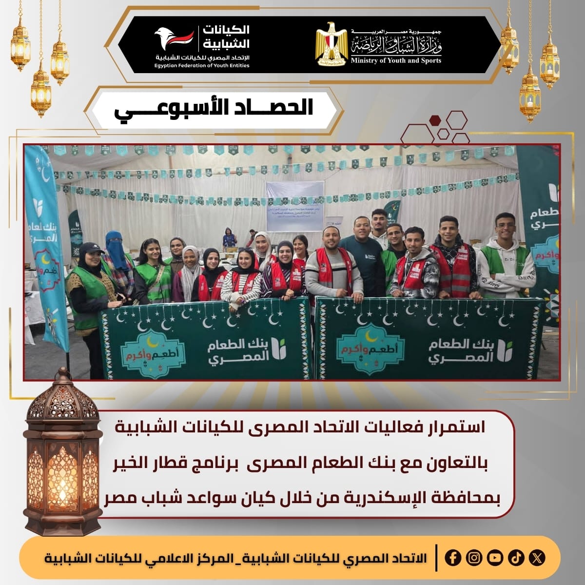 الاتحاد أكد من خلال هذا الحصاد الأسبوعي استمراره في تطوير برامجه ومبادراته بما يتماشى مع توجهات الدولة لتمكين الشباب وتعزيز دورهم كشركاء أساسيين في مسيرة التنمية وبناء المستقبل.