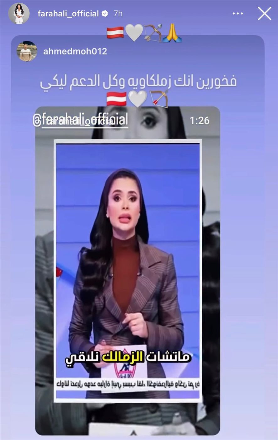 الصحافة الرياضية في مصر شهدت حالة من الجدل بعد ظهور المذيعة فرح علي في التريند بسبب إيقافها من المجلس الأعلى لتنظيم الإعلام، وده بعد ما نشرت فيديو على إنستجرام شافت إنه يستحق الدفاع عن جمهور الزمالك.