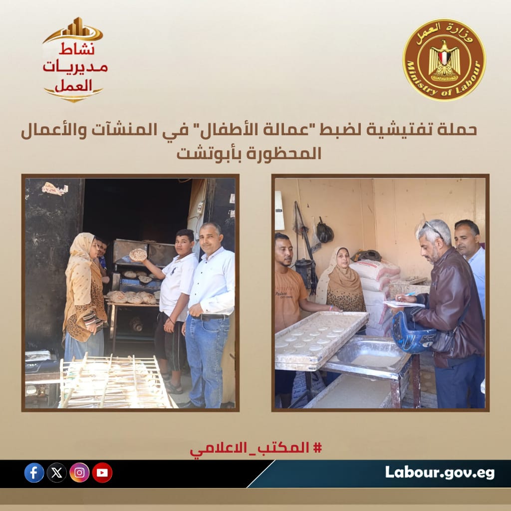 حملة تفتيشية لمتابعة “عمالة الأطفال” في المنشآت والأعمال المحظورة بأبوتشت