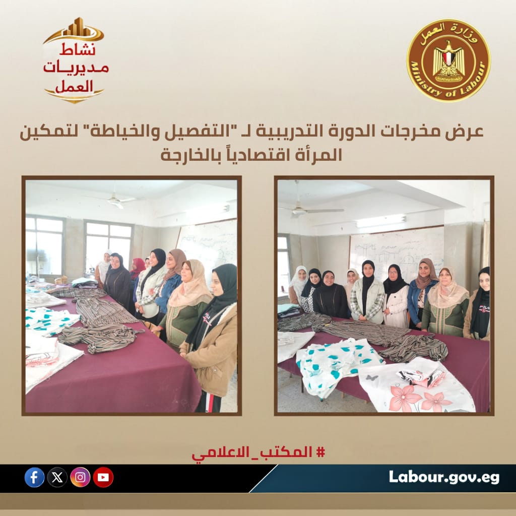استعرض مركز التدريب المهني بالخارجة، تحت إشراف أسامة إبراهيم محمد، مدير مديرية عمل الوادي الجديد، منتجات الدورة التدريبية لمهنة “التفصيل والخياطة”. شملت الدورة تدريب 10 فتيات بالتنسيق مع إدارة الصناعات الحرفية وبتمويل من وزارة التنمية المحلية، وذلك تنفيذًا لتوجيهات الوزير حسن الرداد بتأهيل الشباب وإكسابهم المهارات اللازمة لفتح آفاق التمكين المجتمعي بمدينة الخارجة.