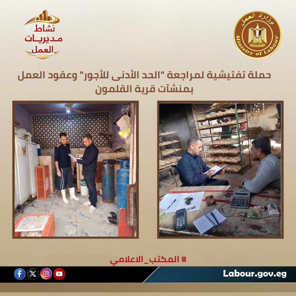 حملة تفتيشية لمتابعة “الحد الأدنى للأجور” وعقود العمل بمنشآت قرية القلمون