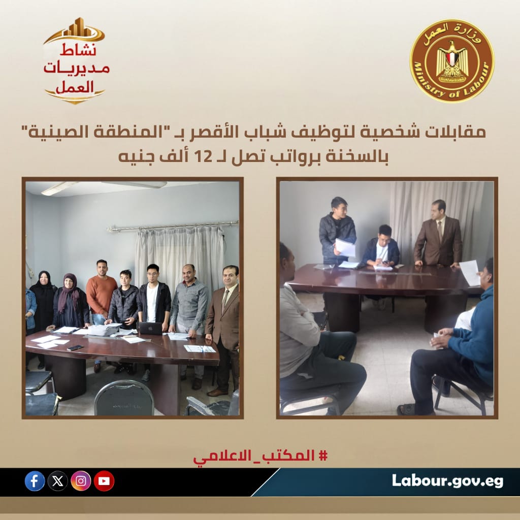 مقابلات شخصية لتوظيف شباب الأقصر بـ “المنطقة الصينية” بالسخنة
