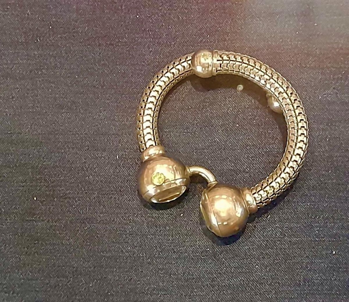 الأستاذة رشا سعيد، مسؤولة قسم المعارض، ذكرت أن من بين القطع المعروضة عقد من أحجار الكوارتز البرتقالي، وأسورة فضية بتصميمات مختلفة، بالإضافة إلى حزام مزخرف بالخرز الملون، وأسورة مطعمة بالمينا بألوان متعددة، ودبوس صدر من الفضة مرصع بفصوص من الكوارتز الأزرق، وزوج من الحُلي يُرتدى على الكتفين مصنوع من أحجار زجاجية ملونة.