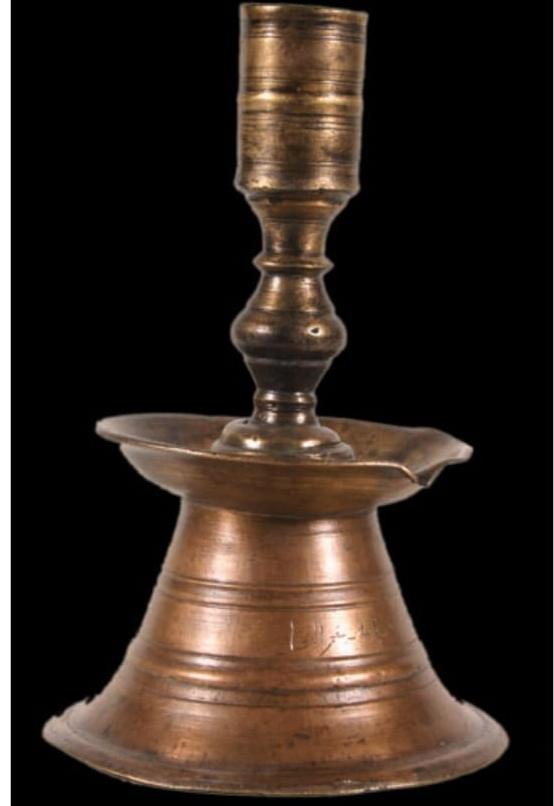 يعرض شمعدانًا نحاسيًا أسطواني الشكل يحمل نقشًا كتابيًا: “وقف على بيعة مارمينا العجايبي”، مما يعكس الطابع الديني المرتبط بالموقع خلال العصر القبطي