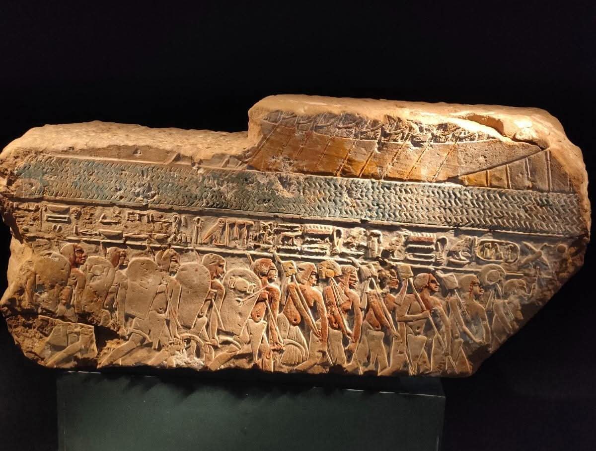 يعرض لوحة النصر من عصر الملك توت عنخ آمون، والتي تصور عرضًا عسكريًا منظمًا، يتقدمه حملة الأعلام، ويُشيد النص المصاحب بالملك ويشبهه بالمعبود “مونتو” إله الحرب.