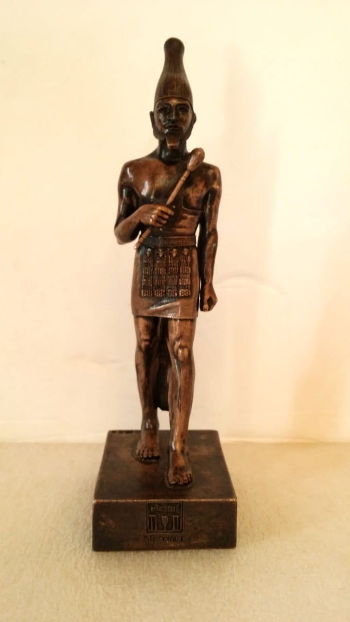 يعرض نموذجًا فضيًا للملك نارمر، مؤسس الدولة المصرية الموحدة، يظهر واقفًا حاملًا الصولجان، ويرمز إلى القوة والوحدة السياسية.